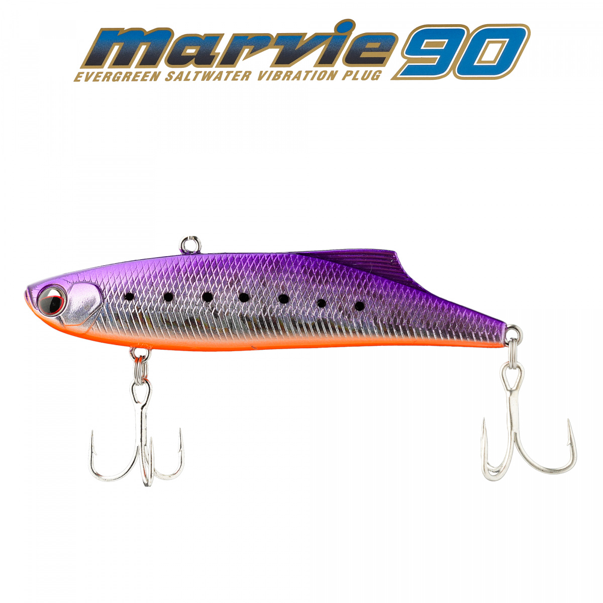 Ever Green Ocean Fleet Marvie 90 — прогонистые, габаритные «тихие» вибы с фиксированной огрузкой, естественными очертаниями и характерным плавничком на спинке. Длина — 90 мм, масса — 27 г. Надежная фурнитура, мощные острые крючки Owner ST-46, прочная конструкция: Ocean Fleet Marvie 90 — достойная приманка для трофейной рыбы.